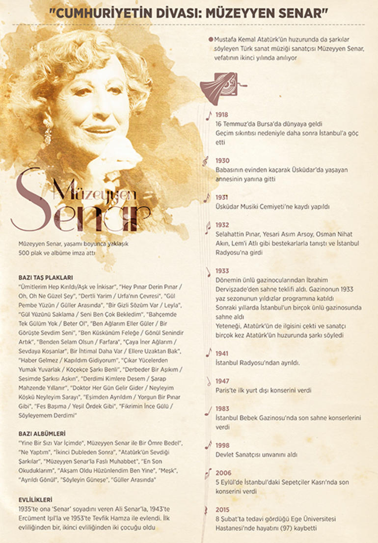"Cumhuriyetin Divası" olarak da bilinen, Türk Sanat Müziği sanatçısı Müzeyyen Senar, vefatının üçüncü yılında anılıyor.