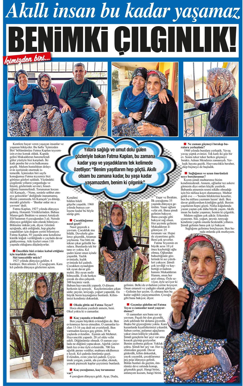 2020 yılının Eylül ayında Honamlı Yörüklerinden Fatma Kaplan teyzemizle ‘İçimizden Biri’ sayfamıza yaptığımız söyleşi ile AGC’nin düzenlemiş olduğu yarışmaya katıldık ve söyleşimiz değerli jüri üyeleri tarafından değerlendirilerek, röportaj dalında yılın gazetecileri arasına girmemize vesile oldu.