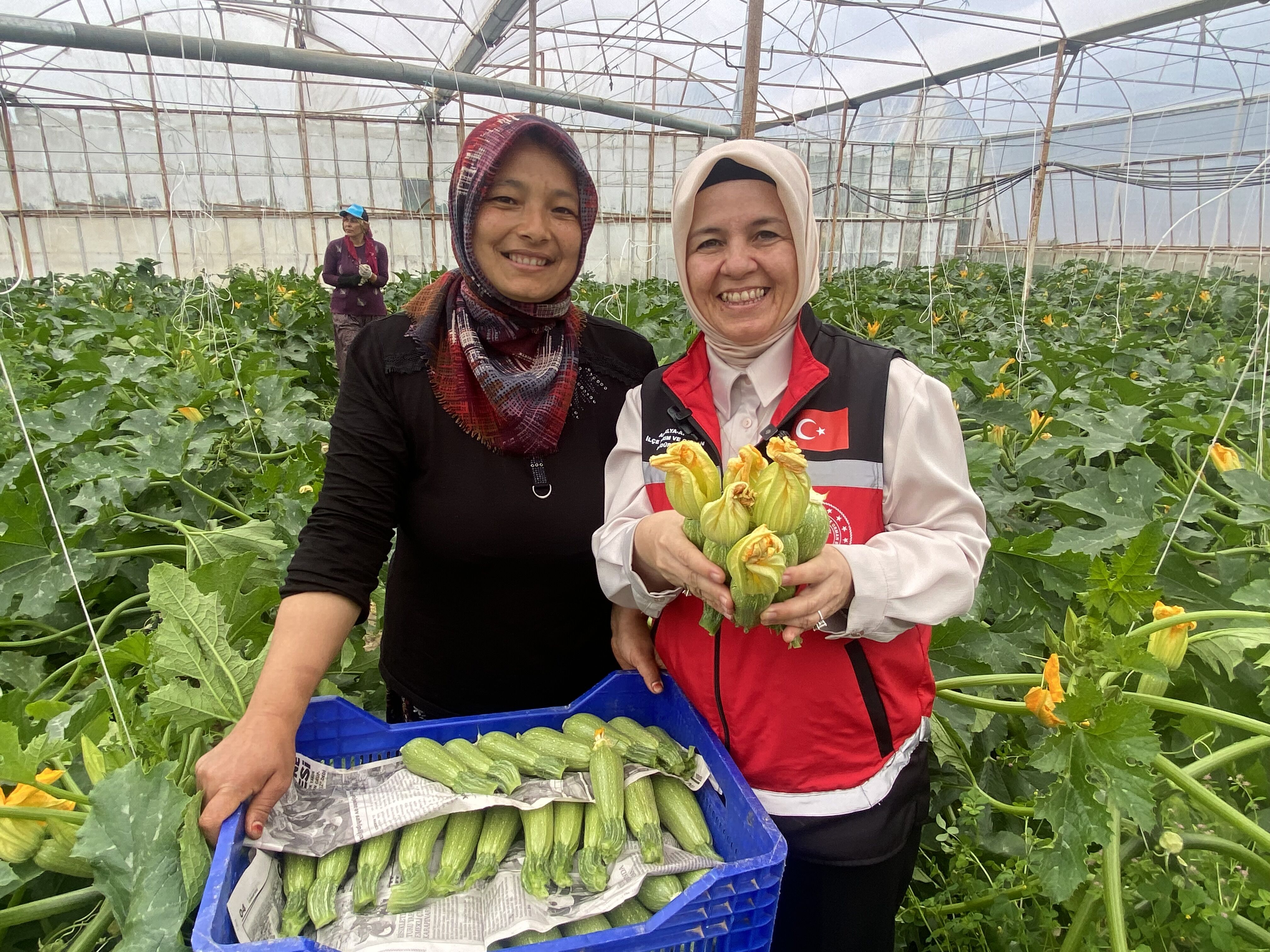 “Bugün Yurtpınar Mahallesi’nden Nurcan Hanım’ın serasındayız. Nurcan Hanım’ı kadın çiftçi olarak ziyaret ettik. Kendisi bugün kabağını hasat ediyor. Nurcan Hanım Aksu’muzun ileri gelen kadın çiftçilerinden. Hem malını serada üretiyor hem pazarda satışını yapıyor. Güler yüzlü bir bayan çiftçimiz. Aynı zamanda çocuklarını da serasında büyütüyor.”