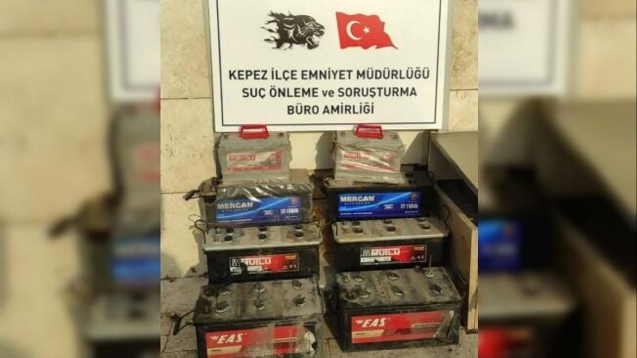 Hırsızlık olayları, dün gece Kepez ilçesinde meydana geldi. Antalya Emniyet Müdürlüğü Suç önleme ve Soruşturma Büro Amirliği ile Hırsızlık Şube Büro Amirliği ekipleri, kiraladıkları otomobillerle gece saatlerinde bölgede bulunan 4 TIR ve 1 motosikletten toplam 8 akü çaldığı tespit edilen şüphelilerin, M.B. ile 18 yaşından küçük M.K. ve Ö.B. olduğu belirlendi. 3 şüphelinin, Yeni Mahalle, Habibler ve Altıayak mahallelerindeki 4 TIR'dan, Fevzi Çakmak Mahallesi'nde ise 1 motosikletten akü çaldığı belirlendi.