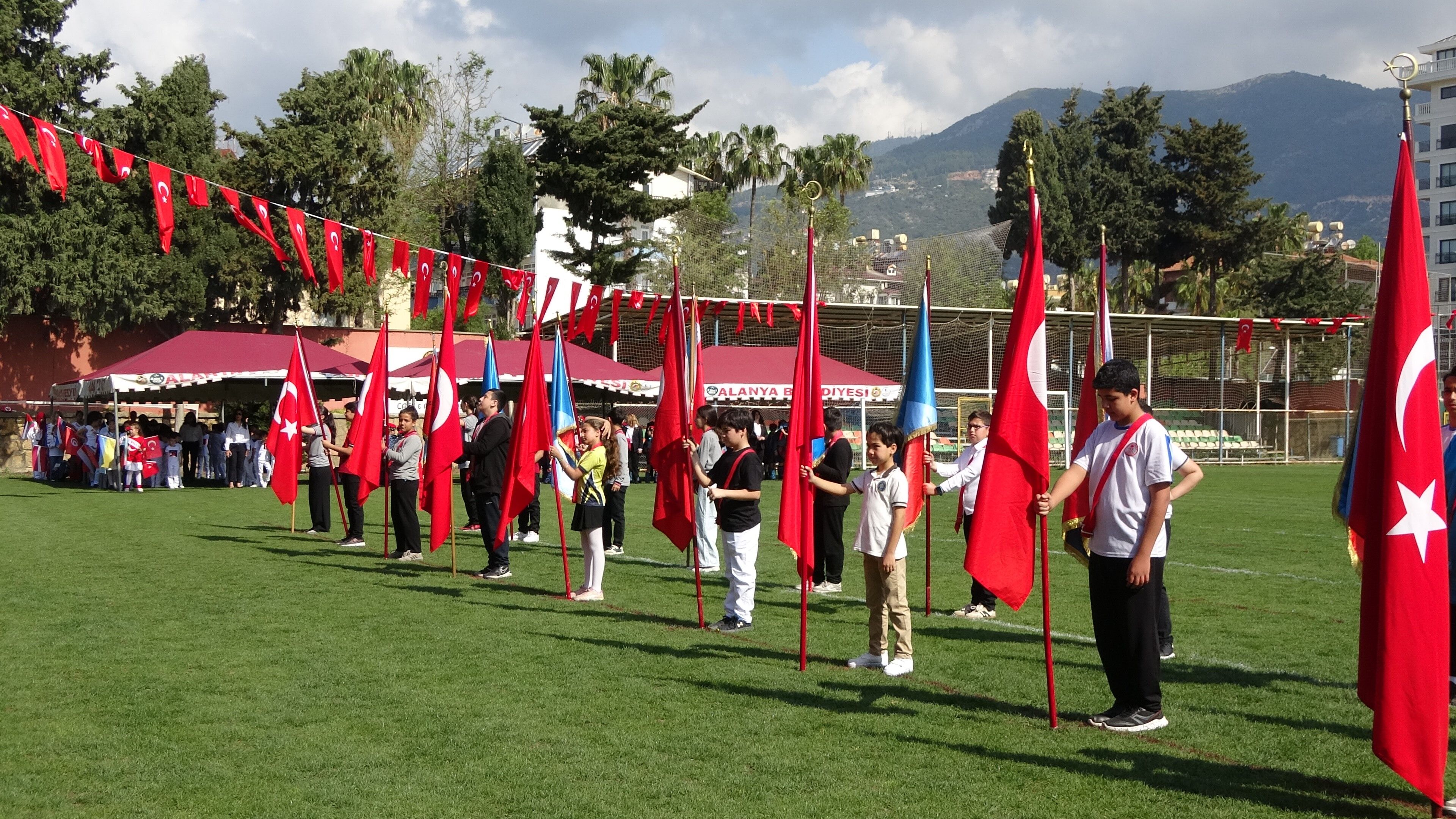 19 Mayıs Stadyumu'nda devam eden törene, Alanya Kaymakamı Şakir Öner Öztürk, Alanya Belediye Başkan Vekili Murat Levent Koçak, Antalya İl Jandarma Komutan Yardımcısı Engin Burak Mindivanlı, Alanya İlçe Milli Eğitim Müdürü Yusuf Yılmaz, sivil toplum kuruluşlarının temsilcileri, siyasi parti temsilcileri, veliler ve çok sayıda öğrenci katıldı.