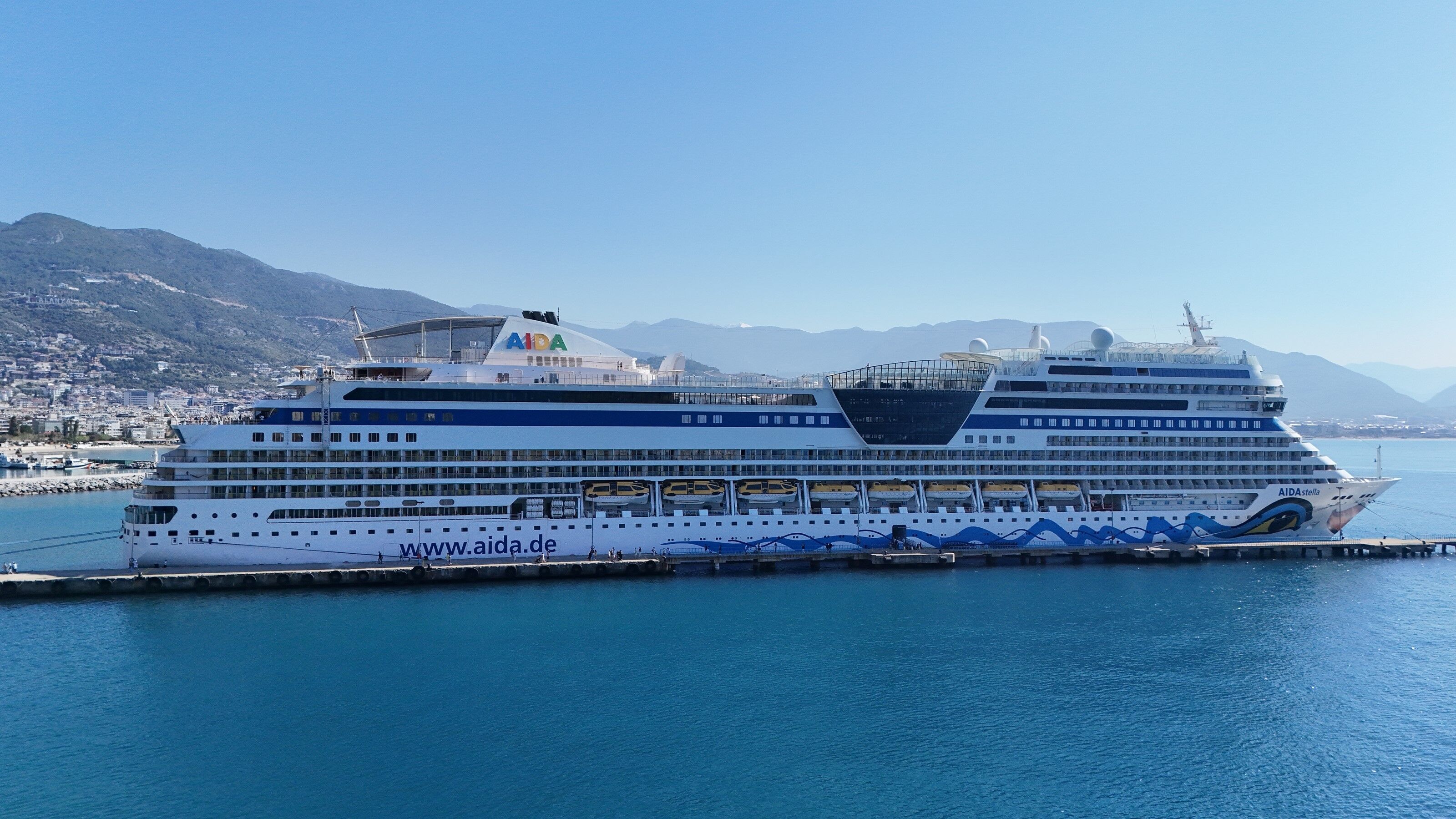 İtalya bandıralı 253 metre uzunluğundaki 'Aida Stella' isimli kruvaziyer yolcu gemisi sabah saatlerinde Alanya iskelesine demir attı.