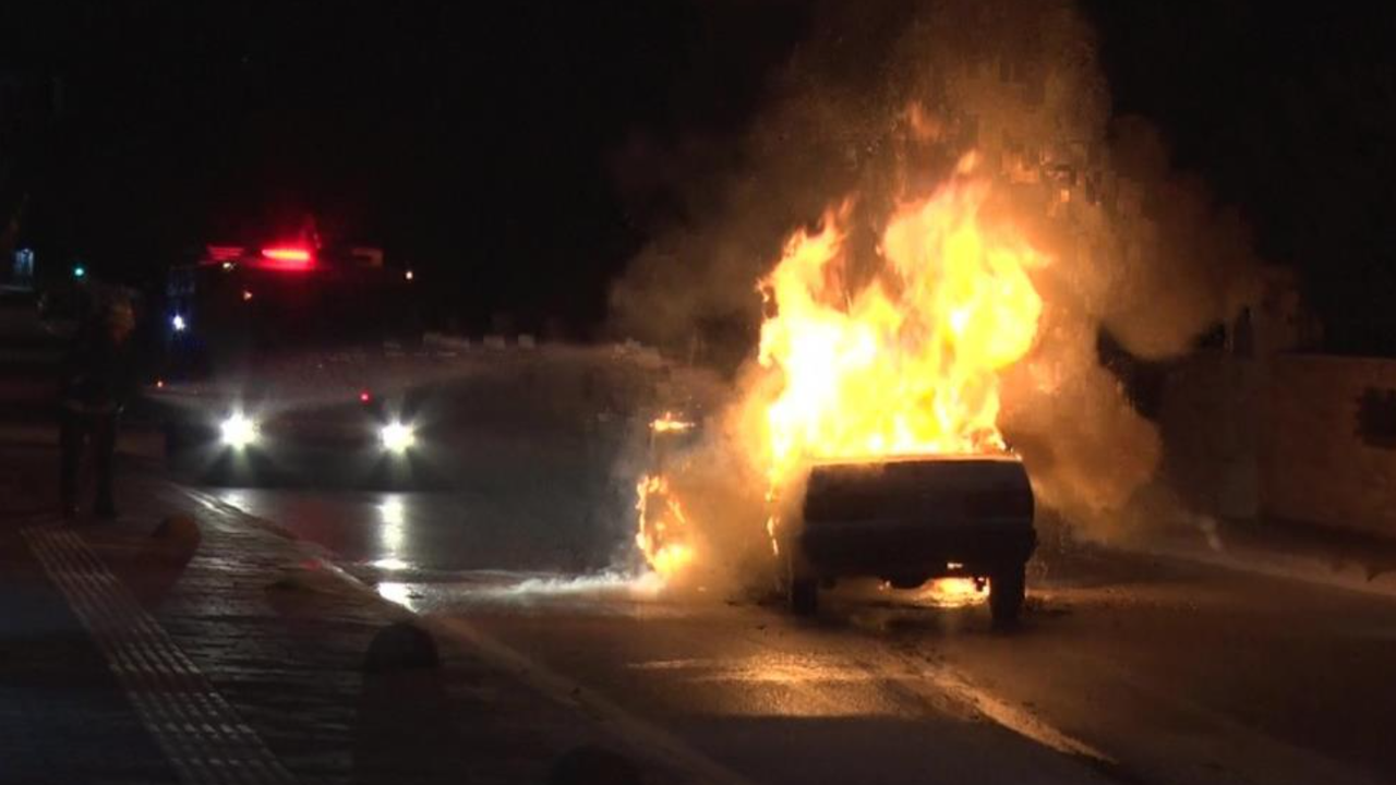 Çevredeki vatandaşlar yangın tüpleri ile müdahale etse de yangın kısa sürede büyüyerek aracı sardı. İhbarla adrese polis ve itfaiye ekipleri sevk edildi. LPG'li olduğu öğrenilen otomobil patlama riskine karşı yol tedbir amacıyla araç trafiğine kapatıldı. İtfaiye ekibinin müdahalesi ile kısa sürede söndürülen yangından geriye demir yığını kaldı.