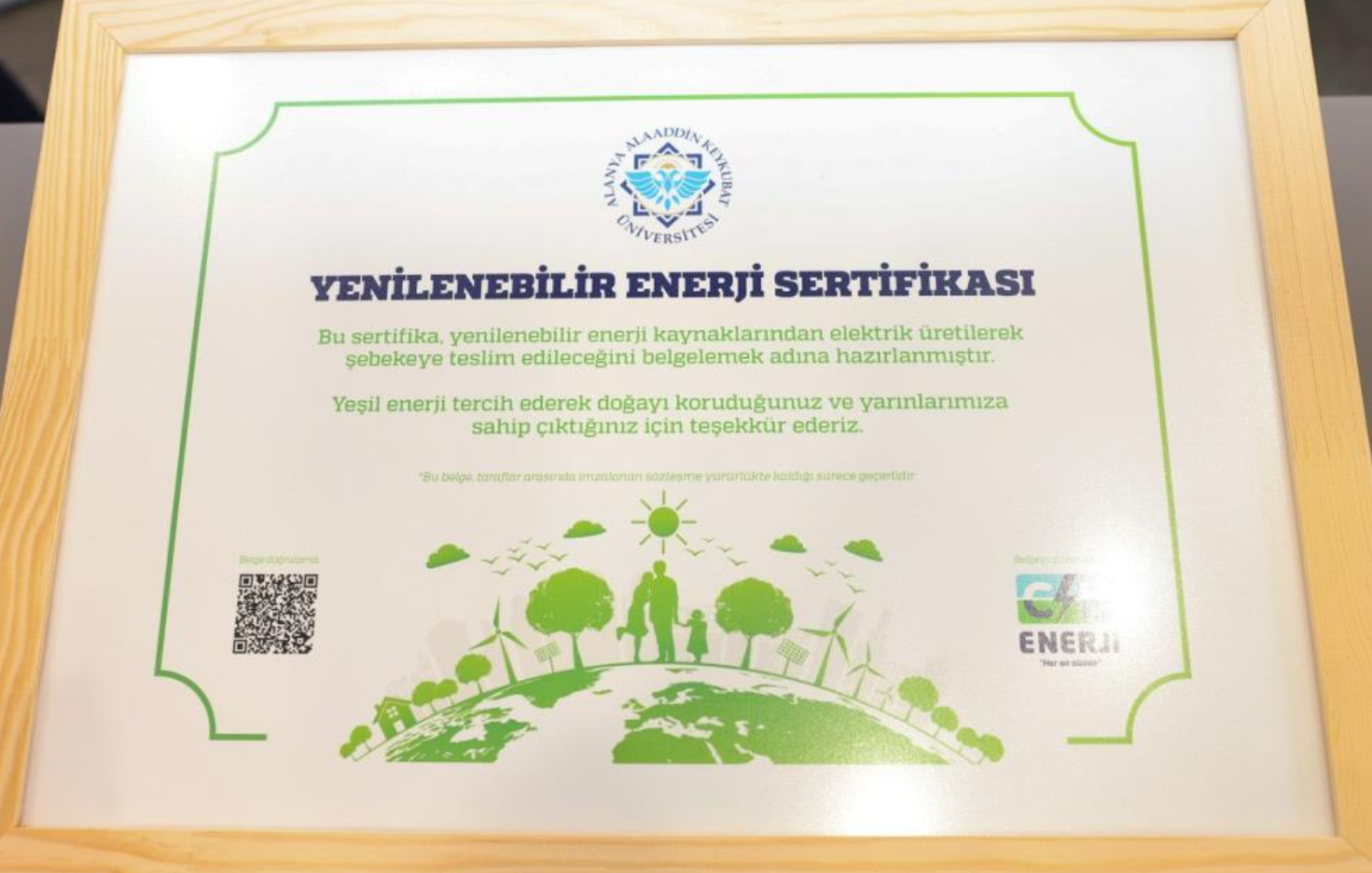 Sertifika, Alanya Alaaddin Keykubat Üniversitesinde düzenlenen törenle takdim edildi. ALKÜ Rektörü Prof. Dr. Kenan Ahmet Türkdoğan, CK Enerji Akdeniz Elektrik Genel Müdürü Fahrettin Tunç'un katıldığı törende, yeşil enerji kullanımının sürdürülebilir bir gelecek için önemine işaret edildi.