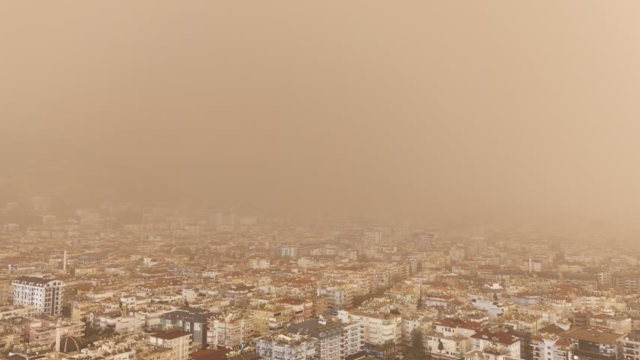 Sahra'dan gelen toz bulutunun Alanya semalarındaki etkisi drone ile havadan görüntülendi. Görüntülerde, ilçe üzerinde yoğun bir sis tabakasını andıran toz bulutu dikkat çekti.