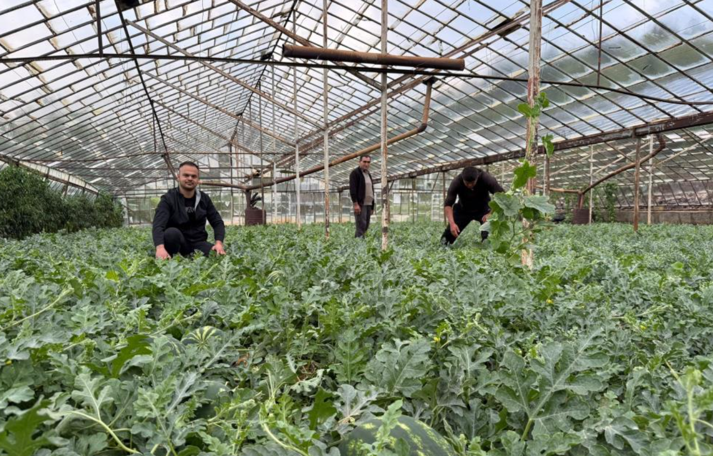 1.5 dönümlük seradan yaklaşık 8-9 ton ürün almayı hedeflediklerini belirten Dolu, "Aralık ayının 28'inde ektik. Şu an yavaş yavaş hasat zamanına başlayacağız. Karpuzları, ayın 15'i gibi kırmayı düşünüyoruz.