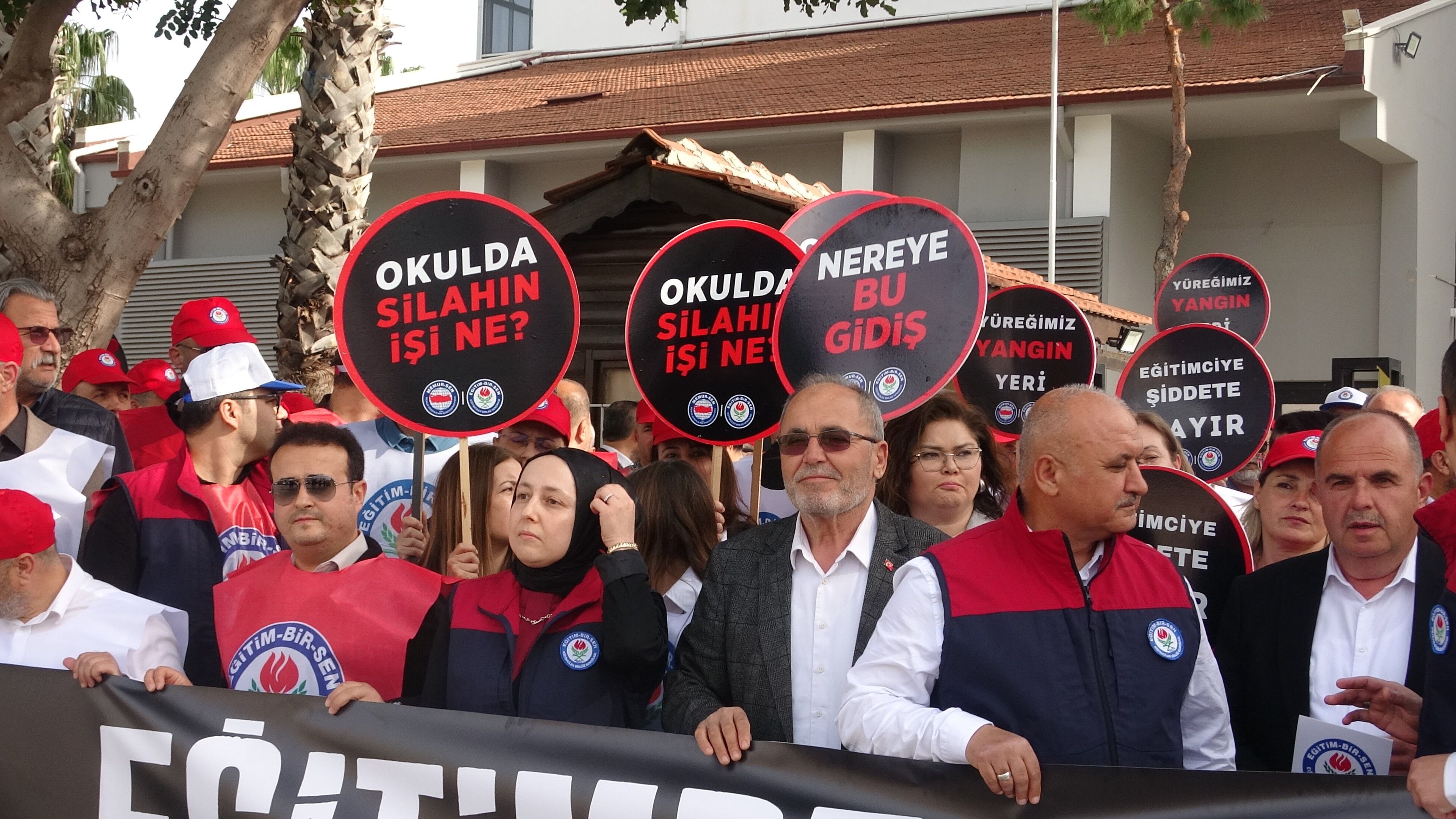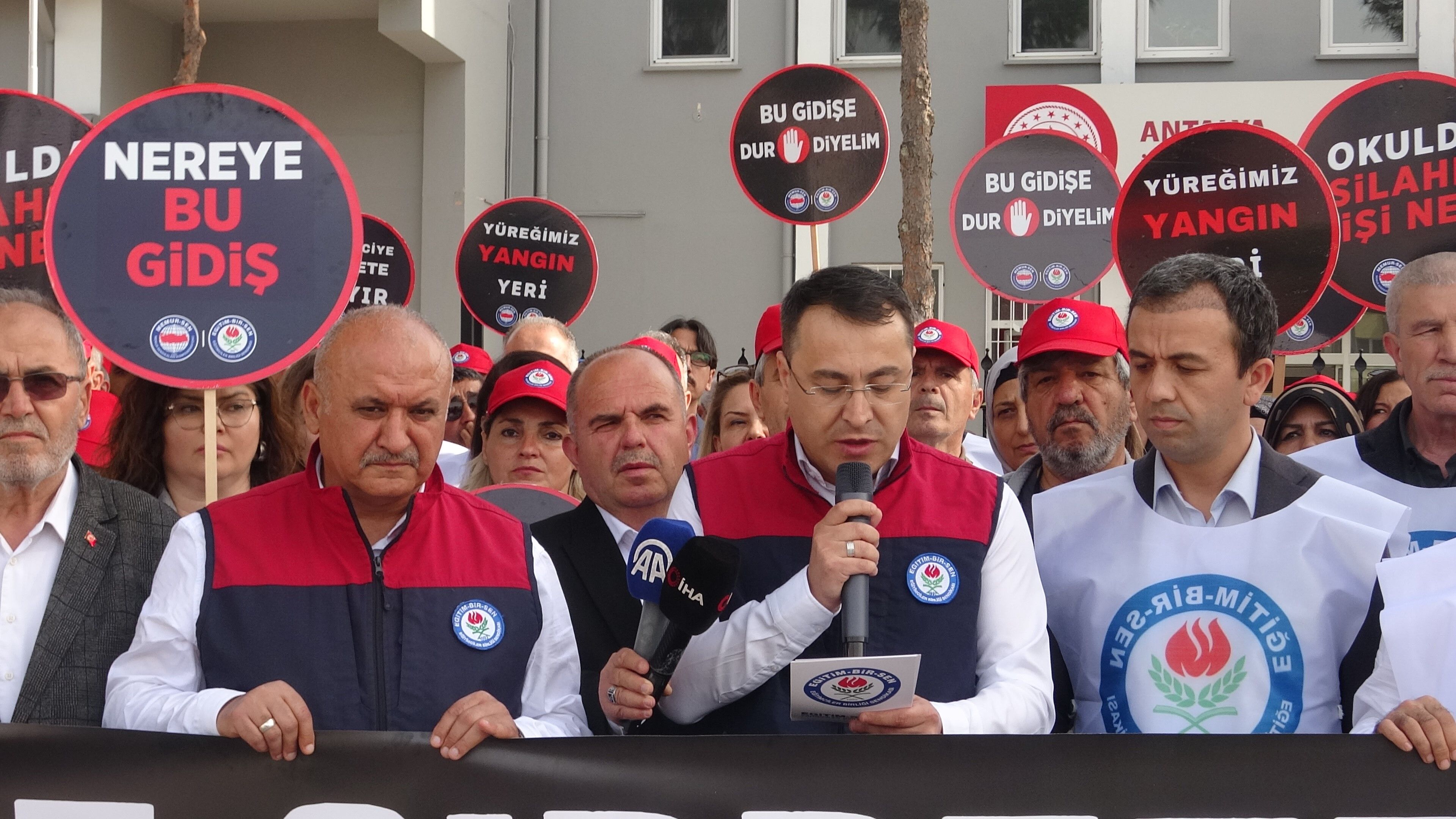 Antalya'nın Muratpaşa ilçesi Antalya İl Milli Eğitim Müdürlüğü önünde bir araya gelen sendika üyeleri, Şanlıurfa Siverek Ahmet Koyuncu Mesleki ve Teknik Anadolu Lisesi ile Kahramanmaraş Ayser Çalık Ortaokulu'nda yaşanan saldırılara tepki gösterdi. Türkiye genelinde iş bırakma kararı alan eğitimciler, okullarda artan şiddet olaylarını kınadı.