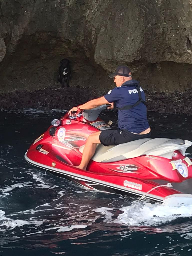 Kıyıda mahsur kalan köpeği ise deniz polisi bota alarak T.A.’ya teslim edildi.