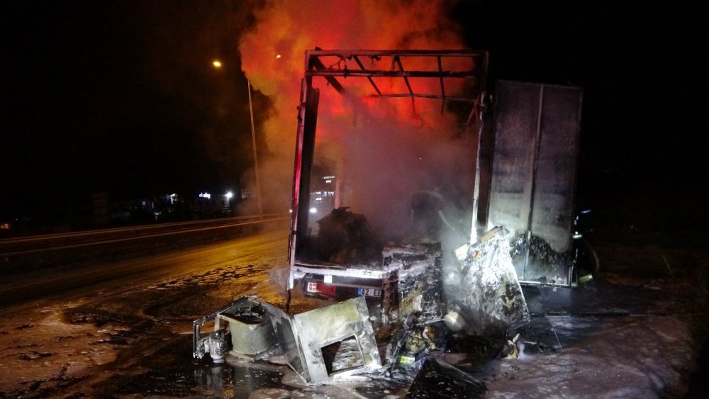 Edinilen bilgiye göre, Antalya’dan yüklediği eşyaları Manavgat’a getirmekte olan Ali Çetinkaya’nın kullandığı 42 EEA 98 plakalı nakliye aracı, Ilıca-Kumköy kavşağını geçtikten kısa bir süre sonra eşyaların bulunduğu bölümden yanmaya başladı. Araçtan inen araç sürücüsü, 112 Acil Çağrı Merkezini arayarak yardım istedi. Bir anda alevlerin sardığı araçta araç sürücüsünün patlayabilecek malzemeler olduğunu söylemesi nedeniyle diğer sürücüler yanan araca müdahale edemezken, bölge trafik istasyon amirliği ekipleri gelerek yolda gerekli önlemleri aldı. Antalya Büyükşehir Belediyesi İtfaiyesi Manavgat Birimine bağlı ekiplerin yangına müdahale ederek kısa sürede söndürmesine rağmen araçta bulunan havuz malzemeleri, televizyon ve buzdolabı gibi elektronik eşyalar kullanılamaz hale geldi.