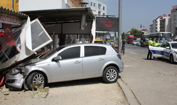 Serik merkezinde meydana gelen kazada, Alman Maria M. (45) kullandığı 07 LHL 16 plakalı otomobilin kontrolünü iddiaya göre başka bir aracın sıkıştırması nedeniyle kaybetti. Kontrolden çıkan otomobil, Serik Otobüsçüler Kooperatifi'nin yol kenarında bulunan yolcu bekleme durağına çarparak durabildi.