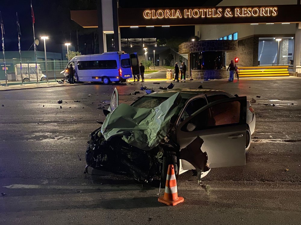 Kaza, dün saat 23.00 sıralarında Belek Mahallesi Turizm Caddesi üzerinde meydana geldi. Edinilen bilgiye göre, İsmail A. idaresindeki 46 AKS 092 plakalı tur minibüsü ile Ahmet G. yönetimindeki 07 AGC 494 plakalı otomobil çarpıştı. Çarpışmanın etkisiyle minibüs, yol kenarında bulunan 5 yıldızlı bir otelin tel çitlerine çarparak durabildi. Kazada otomobil sürücüsü Ahmet G. ile yanında yolcu olarak bulunan Sevcan Ö. (37) yaralandı. Olay yerine polis ve sağlık ekipleri sevk edildi. Yaralılar, sağlık ekiplerinin ilk müdahalesinin ardından ambulanslarla Serik'teki hastanelere kaldırıldı. Yaralılardan Sevcan Ö.'nün durumunun ağır olduğu öğrenildi. Tur minibüsünün Antalya Havalimanı'ndan aldığı 6 Rus turisti Boğazkent Mahallesi'ndeki bir otele götürdüğü, turistlerin kazayı yara almadan atlattığı bildirildi. Turistler, olay yerine gelen başka bir araçla otellerine gönderildi. Polis ekipleri, kazayla ilgili inceleme başlattı.