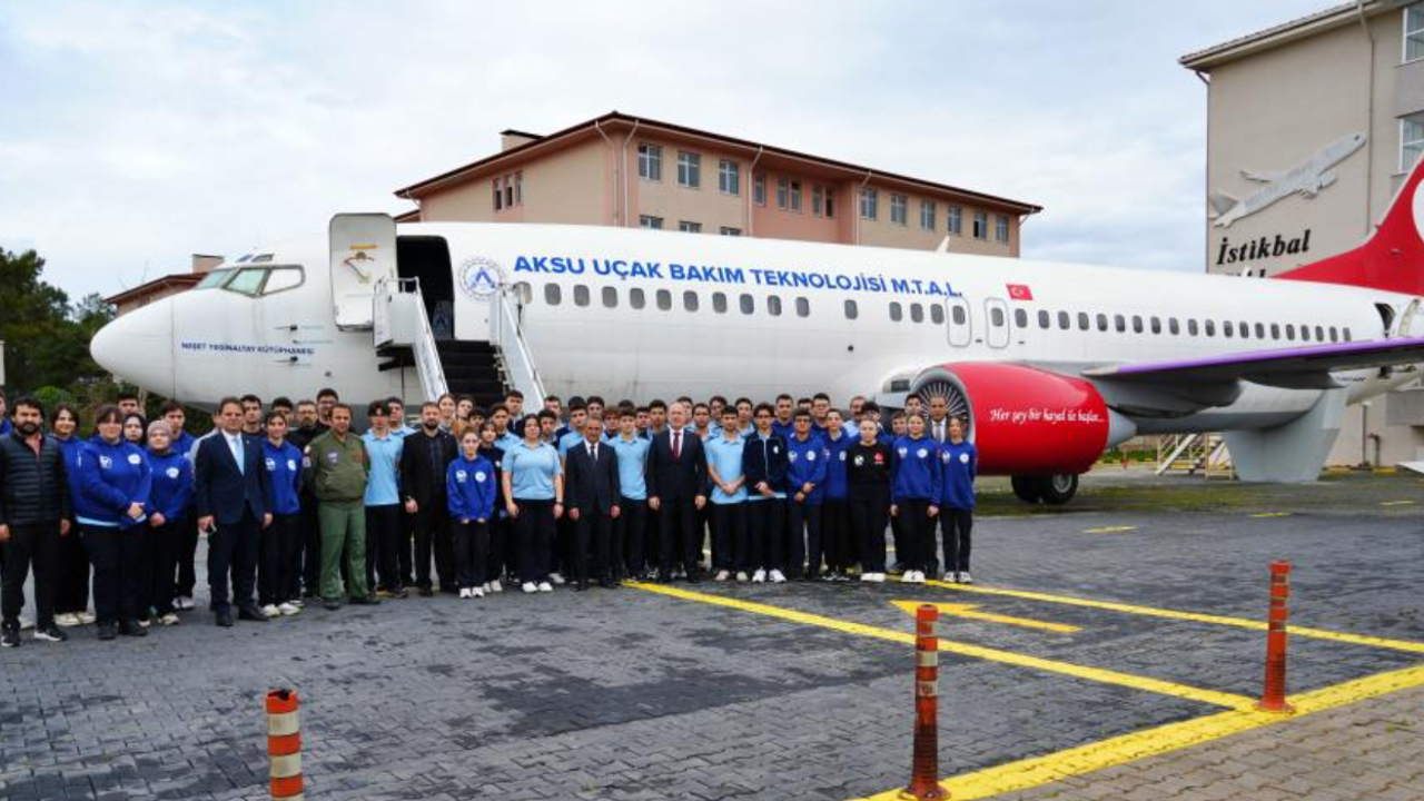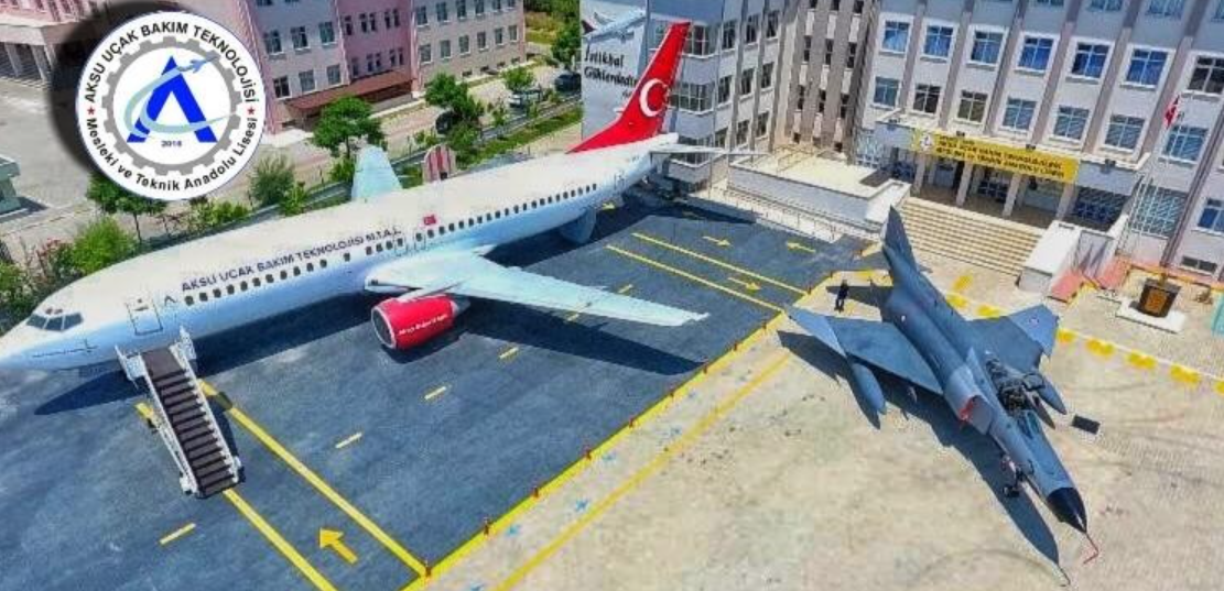 Boeing 737-400 tipi dev uçak, iniş takımları kırıldığı için ıskartaya çıkmış ve Dışişleri Bakanı Mevlüt Çavuşoğlu'nun da araya girmesiyle 2019 yılında Aksu Uçak Bakım Teknolojisi Mesleki ve Teknik Anadolu Lisesine getirilmişti. Okulun bahçesine taşınan uçağa, 8 aylık çalışmayla, kütüphane, müze ve mini sinema salonu kuruldu.