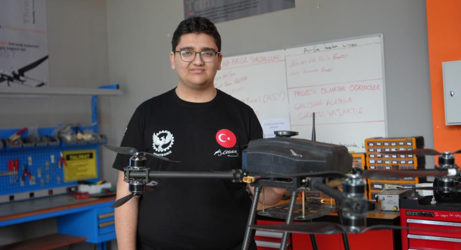 10. sınıf öğrencisi Ahmet Sinan, erişilmesi güç bölgelerdeki su kaynaklarının kalitesini ölçmek amacıyla tasarladıkları dron sistemini anlatarak, "Bu proje ulaşamadığımız yerlerde göllerde, denizlerde ya da dağın tepesinde oluşan krater göllerinde suyun katı atık, pH ve alkali değerlerini ölçmemizi sağlıyor ve bu bilgileri anlık olarak bize aktarıyor" dedi. Sinan, projenin tamamen okulda el yapımı olarak üretildiğini belirterek, sistemin uzun süre otonom uçuş yapabilen, yüksek menzilli ve geliştirilmeye açık bir dron olduğunu söyledi.