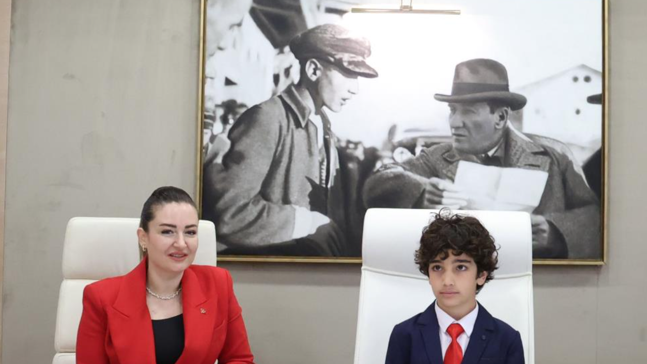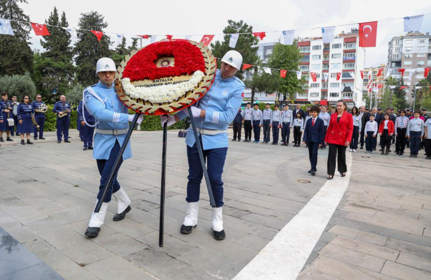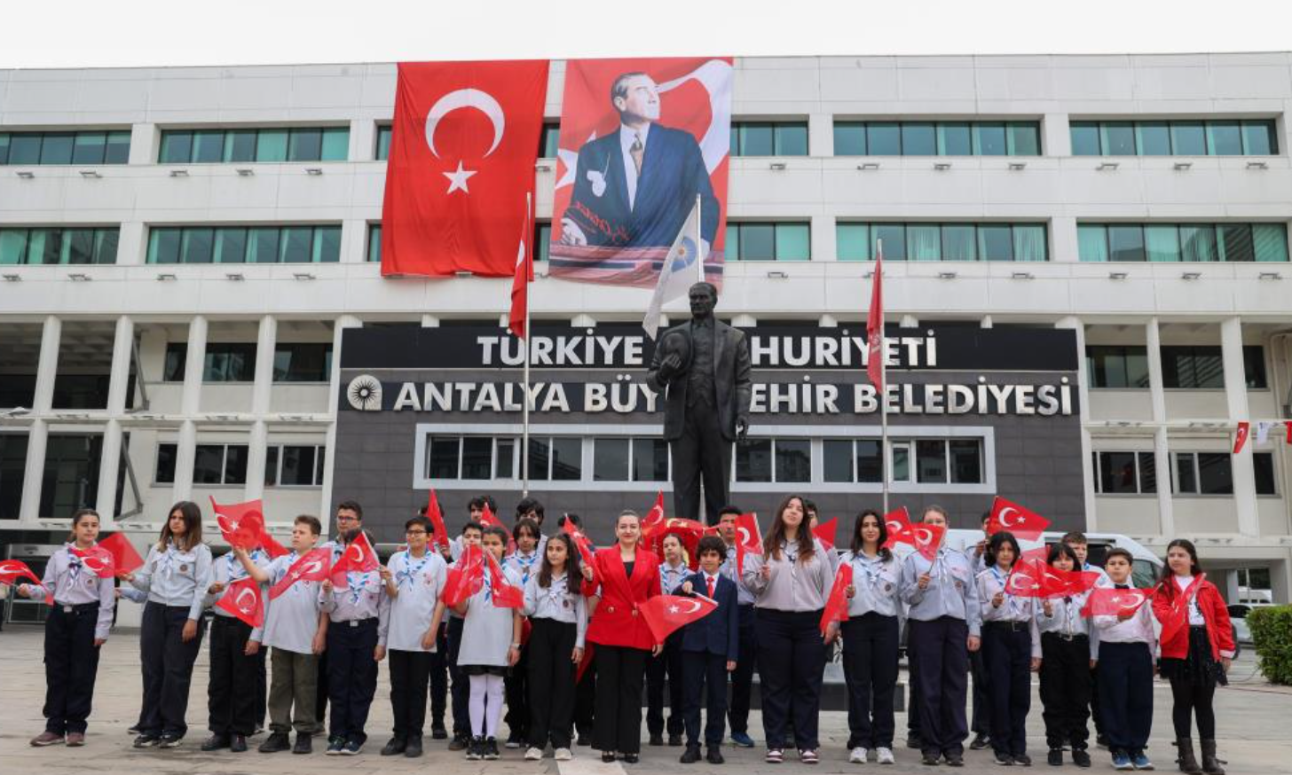 Türkiye Büyük Millet Meclisi’nin (TBMM) açılışının 106. yıl dönümü ve 23 Nisan Ulusal Egemenlik ve Çocuk Bayramı etkinlikleri kapsamında Antalya Büyükşehir Belediye Başkanlığı Hizmet Binası önünde bulunan Atatürk Anıtı'nda çelenk sunma töreni düzenlendi. Antalya Büyükşehir Belediye Başkan Vekili Büşra Özdemir, makamını devrettiği Çocuk Başkan Can Toprak Güven ile birlikte Atatürk Anıtı’na çelenk sundu. Çelenk sunma töreninin ardından Büyükşehir Belediye Başkanlığı makamında devir teslim töreni yapıldı. Büyükşehir Belediye Başkan Vekili Büşra Özdemir, koltuğunu Cengiz Topel İlkokulu 4. sınıf öğrencisi Can Toprak Güven’e devretti.