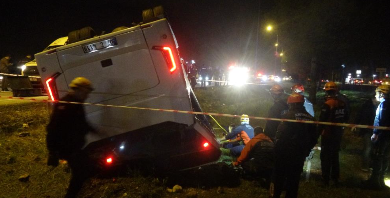 Kaza, Döşemealtı ilçesi Akdeniz Bulvarı üzerinde saat 20.30 sıralarında meydana geldi. Edinilen bilgiye göre, vardiya değişimi sonrası mesaiden çıkan infaz koruma memurlarını taşıyan Mustafa O. yönetimindeki 07 C 4119 plakalı midibüs, sağ şeritten önüne çıkan tıra çarpmamak için fren yaptı.