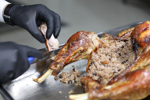 Calista Luxury Resort Mutfak Şefi Sercan Erdoğan, hindinin pişme seviyesinin çok önemli olduğunu belirterek, "Çok pişince kuru ve sert, lezzetsiz bir et olur. O yüzden zeytinyağı, tuz karabiber, kırmızı toz biber, biberiye başta olmak üzere 20 çeşit baharat kullandık. Hazırladığımız sosta hindi etinin yumuşak olması için limon suyu ve portakal suyu ekledik. 2 saat bu sosla fırınlandı. Sonra iç pilavını içerisine doldurup 1 saat daha pişirdik ve bir lezzet çıktı ortaya" dedi.