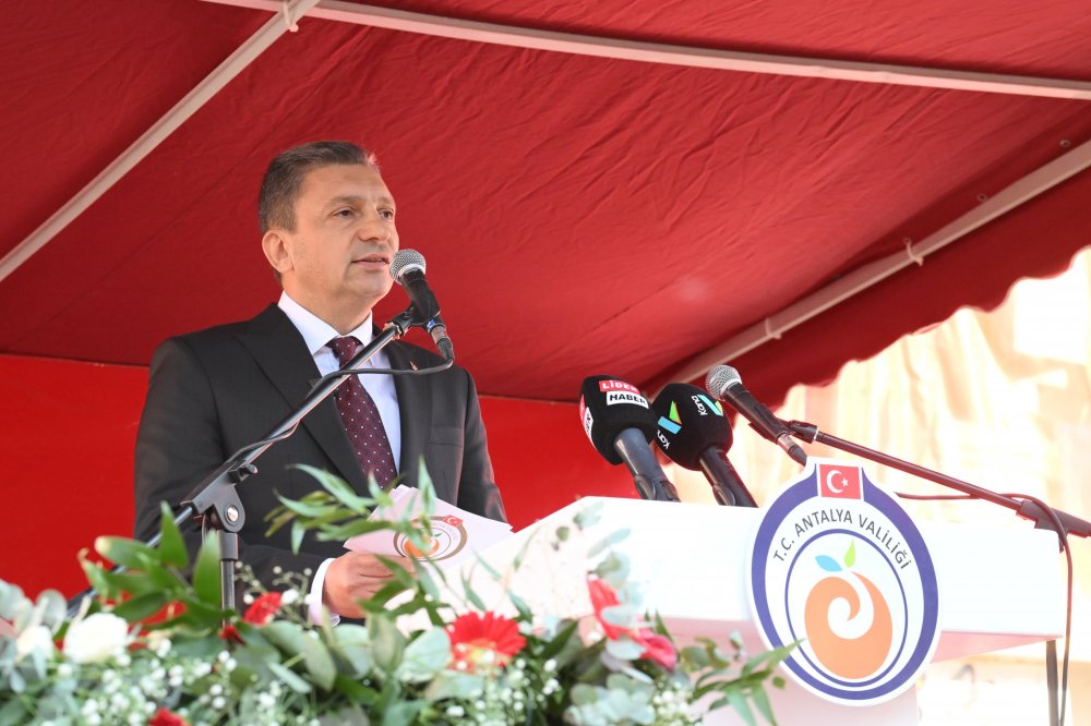 Cumhurbaşkanı Recep Tayyip Erdoğan'ın kutlama mesajının okunmasının ardından kürsüye çıkan Antalya Valisi Hulusi Şahin, Cumhuriyet'in 101. Yılını kutlayarak, şu açıklamalarda bulundu: “Türkiye, dört tarafı ateşle, kanla ve gözyaşıyla çepeçevre kuşatılmış bir coğrafyada 100 yıldır huzur ve güven adası olarak mevcudiyetini muhafaza ediyor. Ve sadece bir asır önce adeta bitmiş ve tükenmiş bir ulustan tekrar dünyada sözü geçen, hakkı hakikati vaaz eden, zalimlerin yüzüne adaleti haykıran, hür ve müstakil bir devlet olarak tarih sahnesinde yerini alıyor. Bu büyük başarının sırrı, Cumhuriyetimizin kurucu değerlerinde ve Türkiye Cumhuriyeti Devleti'nin üzerinde yükseldiği temel felsefede gizlidir. Bu kurucu değerler İstiklal harbini büyük zaferle tamamlayan, bu zafer üzerine irfanla yeni devleti inşa eden, o büyük ve şanlı neslin kurucu babalarımızın eseridir. Bu değerlerin ilki, millet tanımıdır. 20. yüzyılın ilk yarısında dünyayı hakimiyeti altına alan temel görüş; ırkçı, saldırgan, ötekileştirici bir millet tasavvuruydu. Bu ve benzeri zihniyetlerin hakim olduğu o yıllarda, Cumhuriyeti kuran irade ise Büyük Atatürk'ün veciz ifadeleriyle şöyle söylüyordu “Türkiye Cumhuriyeti'ni kuran Türkiye halkına Türk milleti denir.” Diyarbakırlı, Vanlı Erzurumlu, Trabzonlu, İstanbullu, Trakyalı ve Makedonyalı hep bir ırkın evlatları hep aynı cevherin damarlarıdır. Bu kapsayıcı, kucaklayıcı, ortak kültür, ortak tarih ve ortak gelecek tasavvuru etrafında birleştiren millet anlayışı, 1924'ten itibaren anayasalarımızda da yerini almıştır. Halen yürürlükte olan ve hepimizin sadakat yemini ettiğimiz Anayasamızın 66. Maddesi, kimlik tartışmalarına son noktayı koyuyor. Türk devletine vatandaşlık bağıyla bağlı olan herkes Türk'tür”