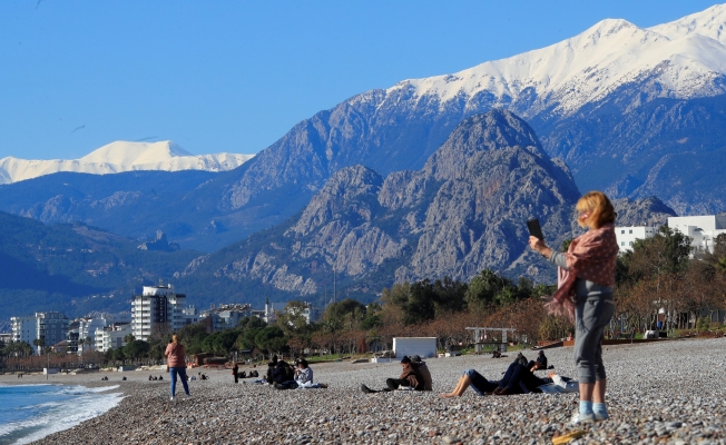 Antalya'da yağış ve fırtına nedeniyle günlerdir evlerine kapanan vatandaşlar, güneşli havayı fırsat bilip soluğu Konyaaltı Sahili'nde aldı. Hafta içi olmasına rağmen Antalyalılar turkuaz rengi deniz ve karlı dağ manzarası eşliğinde güneşli havanın tadını çıkardı.