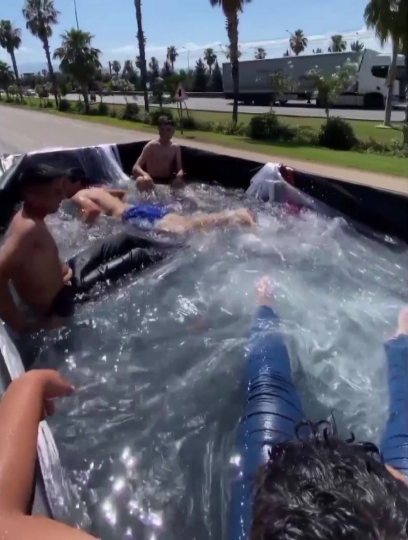 Kamyonetin kasasını naylon ile kaplayan bir vatandaş kasaya doldurduğu suya çocukları da alarak serinlemeye çalıştı. Seyir halinde olan ve çevredekilerin şaşkın bakışları arasında su dolu kasada çocuklar bunaltıcı sıcakta serinlemeye çalıştı. Bir başka noktada ise Cam Piramit içerisindeki alanda vatandaşlar su içerisine masa ve sandalye atarak serinlemeye çalıştı. Birkaç metre yanlarında ise çocukların oyun havası eşliğinde suda eğlenceli vakit geçirmeleri görüntülere yansıdı.
