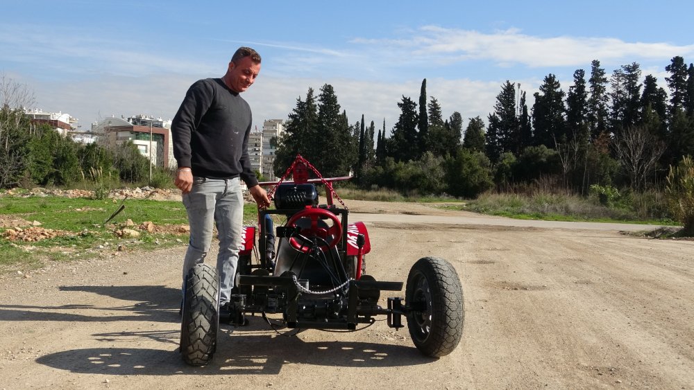 Antalya'da yaşayan ve 27 yıldır motosiklet tamirciliği ile uğraşan İsa Yalçın, çocukluğundan beri hayalini kurduğu aracı arkadaşlarının ‘yapamazsın, boş ver' sözlerine rağmen kendi imkanları ile yapmayı başardı. Yalçın, 2 yıl önce projesini kendi hazırlayarak hurda malzemeler ve parçalarla yapmaya başladığı aracın ilk deneme sürüşünü gerçekleştirdi. İskeletini profilden, motorunu ise farklı motosikletlerden çıkma parçalardan yaptığı ve yarış arabalarını hatırlatan yapısı ile aracın hızı saatte 160 kilometreyi buluyor.