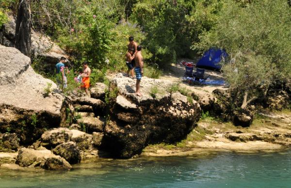 Öte yandan, Manavgat Şelalesi'ni ziyaret edenler, yetkililerin tüm uyarılara rağmen tehlikeli ve yasak olan ırmağa girip yüzüyor. Su seviyesinin azaldığı anlarda ırmaktaki adacığa yanlarında çocuklarıyla yürüyerek çıkanlar, tehlikeye aldırış etmiyor. İşletme sahipleri, ırmaktaki su seviyesinin aniden yükseldiğini, adacığa çıkanların yaşamlarını tehlikeye attığını belirtti.