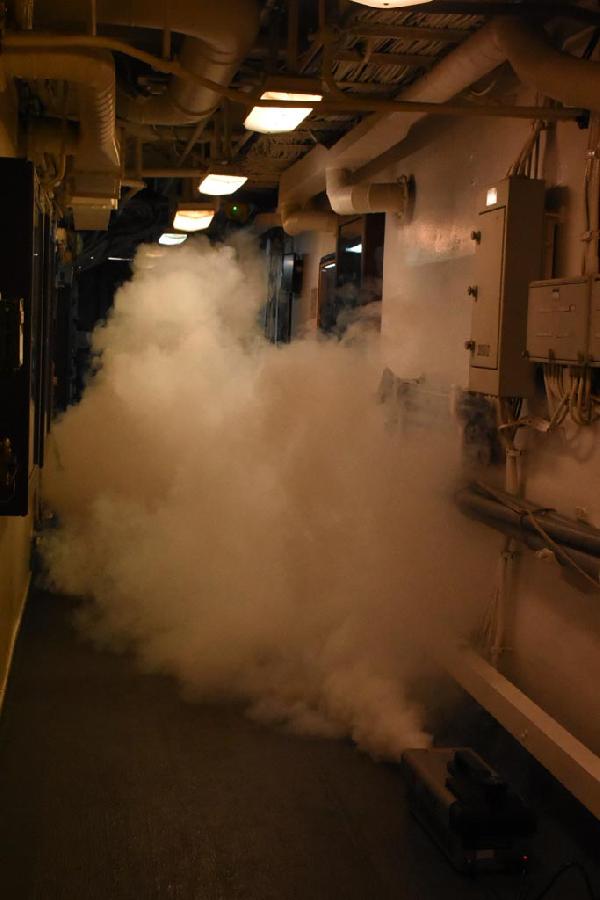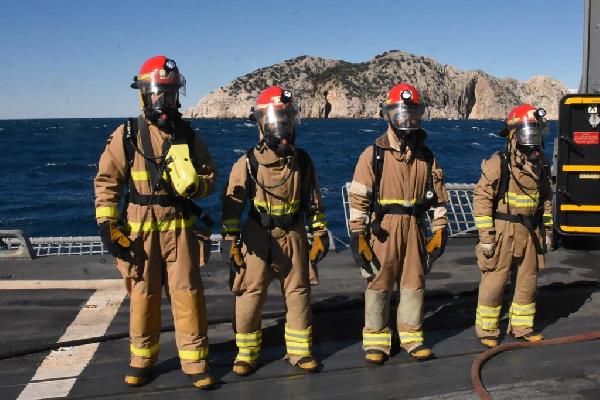 Kara bombardımanı eğitiminden sonra ise 'TCG Gaziantep Fırkateyni'nde yangın tatbikatı yapıldı. Simülasyon tarafından fırkateyn içine duman verildi. Yangın alarmından sonra alevlere müdahale ekibi, özel kıyafetleriyle yanan alana girerek, müdahale etti. Yangın tatbikatından sonra ise fırkateynin mekanik hareket dairesi ve hasar kontrol ünitesi hakkında bilgilendirme yapıldı.