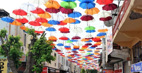 Sağanak yağmur ve fırtınanın ardından birçoğu yerinden koparak yırtılan şemsiyeler, belediye ekiplerince söküldü. Rengarenk sokak eski sade görünümüne büründü.