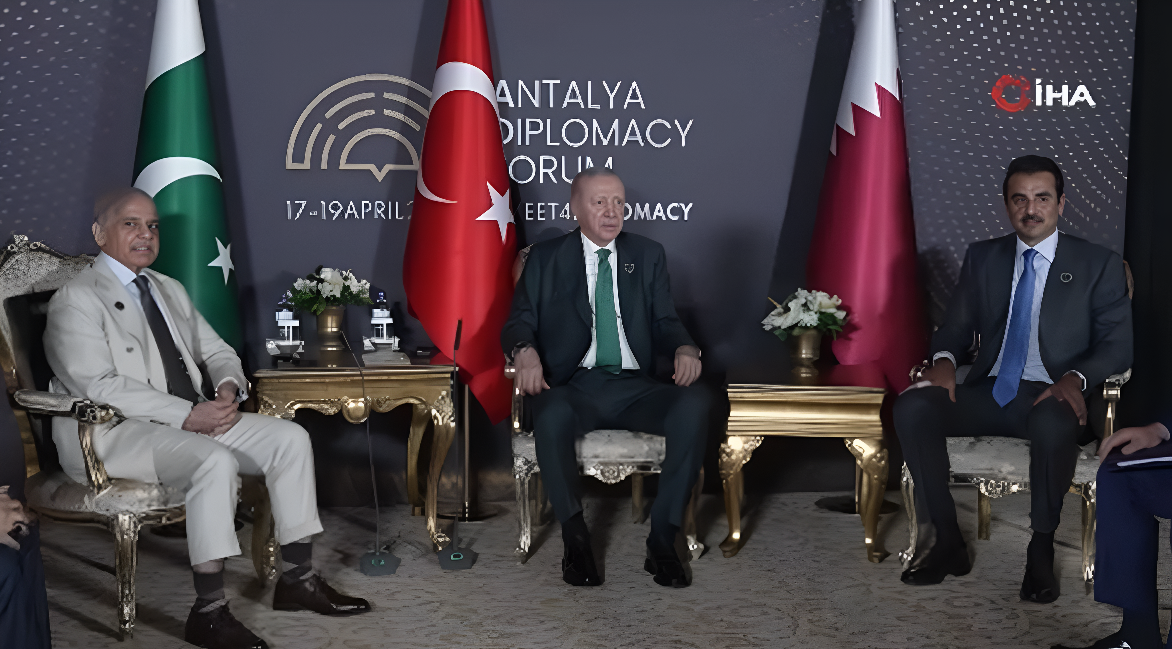 Antalya'nın Serik ilçesine bağlı Belek turizm bölgesindeki NEST Kongre Merkezi'nde bu yıl beşincisi düzenlenen Antalya Diplomasi Forumu kapsamında (ADF2026), kente gelen Cumhurbaşkanı Recep Tayyip Erdoğan, Pakistan Başbakanı Şahbaz Şerif ve Katar Emiri Şeyh Temim bin Hamed Al Sani ile görüştü.