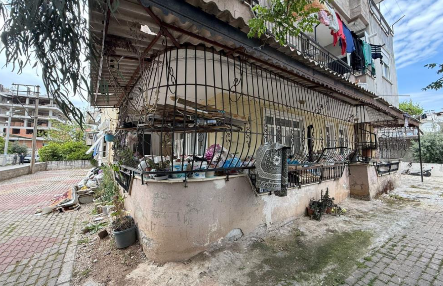 Antalya'nın Serik ilçesi Kökez Mahallesi'nde 3 katlı apartmanın zemin katında oturan yaşlı kadının daire içerisinde ve bahçede biriktirdiği çöpler binada oturanları isyan ettirdi.