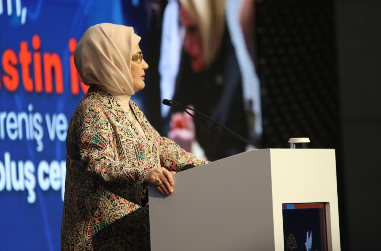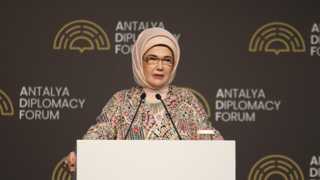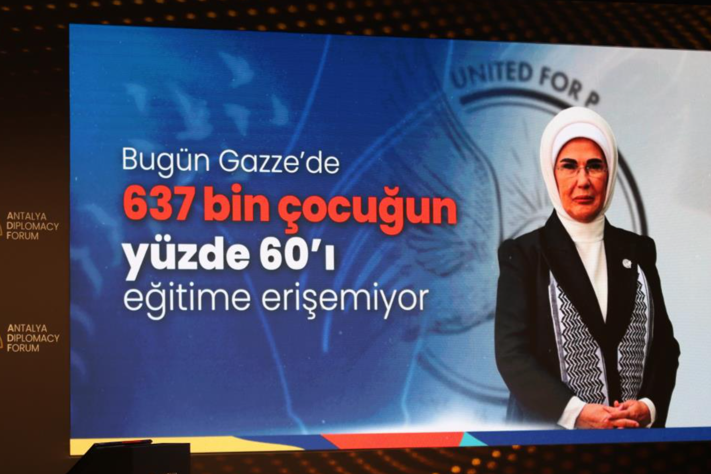 Antalya'da düzenlenen Antalya Diplomacy Forum kapsamında gerçekleştirilen "Filistin için Tek Yürek: Eğitimde Yıkıma Karşı Geleceği Korumak" başlıklı oturumda, Cumhurbaşkanı Recep Tayyip Erdoğan'ın eşi Emine Erdoğan; BM Genel Sekreteri Çocuklara Yönelik Şiddet Özel Temsilcisi Najat Maalla M'jid, Bosna Hersek Devlet Başkanlığı Konseyi Başbakanı'nın eşi Mirela Bocirovic ve akademisyen Ilan Pappe ile bir araya geldi.