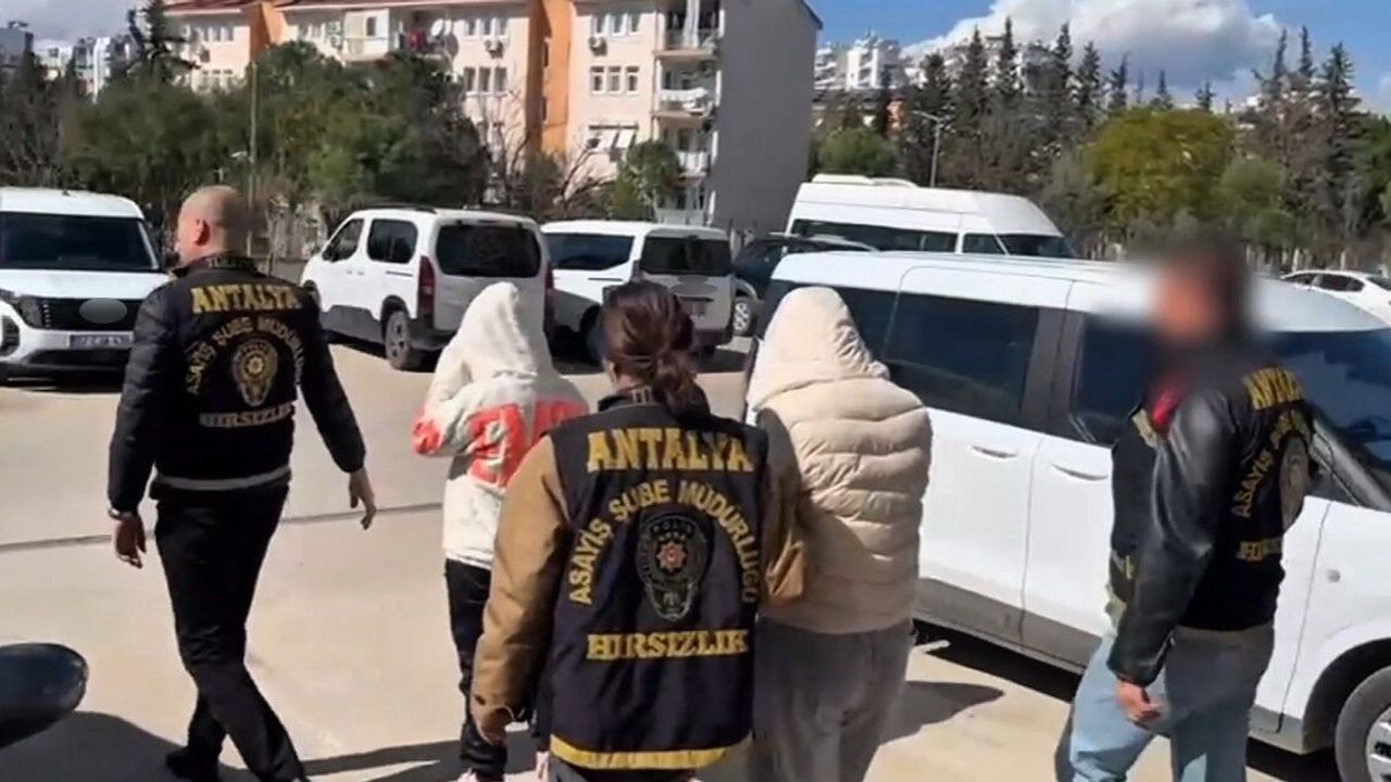 Antalya İl Emniyet Müdürlüğü Asayiş Şube Müdürlüğü ekipleri, Muratpaşa ilçesi Güzeloba Mahallesi'nde iki ayrı ikamette meydana gelen hırsızlık olaylarının aydınlatılması için çalışma başlattı. Yaklaşık 280 saatlik güvenlik kamerası kaydı incelendi. 30 ayrı iş yeri kamerası ve Kent Güvenlik Yönetim Sistemi (KGYS) görüntülerinin analiz edilmesi sonucunda olayın şüphelilerinin S.T., E.D. ve N.Ö. olduğu tespit edildi. Şüpheliler Burdur'un Çavdır ilçesi Söğüt mevkiinde yakalandı. Şahısların kullandığı araç ve ikametlerde yapılan aramalarda 53 gram altın, 2 adet 20 gramlık altın bilezik, 1 çift altın küpe ve 11 adet saf gümüş sikke ele geçirildi. Ele geçirilen malzemeler müştekilere teslim edildi. 'Evden hırsızlık' suçundan adli makamlara sevk edilen şüphelilerden N.Ö. hakkında adli kontrol kararı uygulanırken, S.T. ve E.D. tutuklanarak cezaevine gönderildi.