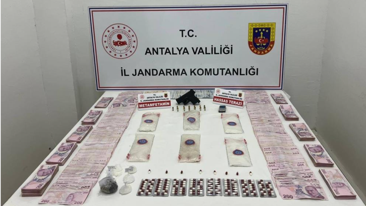 Şüphelilere ait araç ve ikamette yapılan aramalarda, 1 kilo 260 gram metamfetamin, 120 adet sentetik uyuşturucu hap, 35 gram skunk, 1 adet hassas terazi, 1 adet 9 milimetre ruhsatsız tabanca ve şarjörü, 12 adet 9 milimetre fişek, ve uyuşturucu satışından elde edildiği değerlendirilen bir miktar nakit para ele geçirildi.