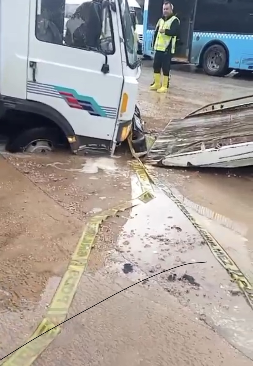 Güzelyurt Mahallesi Serik Caddesi üzerinde geçtiğimiz hafta yapılan su borusu yenileme çalışması sonrasında zemin yeterince sağlamlaştırılmadan üzeri kapatıldı. Ancak asfaltlama yapılmadan bırakılan yolda, bugün etkili olan şiddetli yağış sonrası çökme meydana geldi. Çökme nedeniyle belediye otobüsü ve birkaç araç yolda oluşan çukura saplandı. Araçlar, çekici yardımıyla uzun uğraşlar sonucu kurtarılabildi. Yol, yaşanan olayın ardından trafiğe kapatıldı.