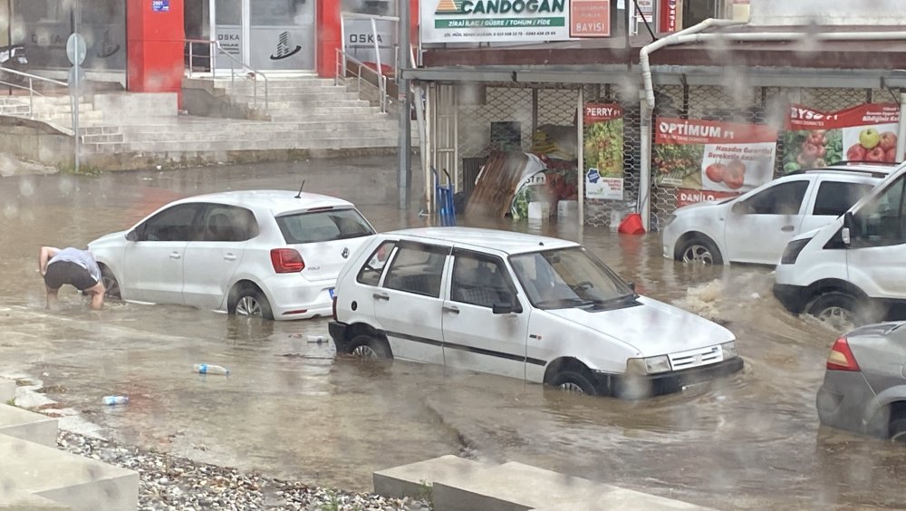 ANTALYA (İHA) - Antalya'nın Aksu ilçesinde bugün öğle saatlerinde aniden bastıran sağanak yolları adeta göle döndürdü. Sağanak nedeniyle bazı araçlar yolda mahsur kalırken, sürücüler ve vatandaşlar su giderlerini açmak için çaba harcadı. Giderlerin açılması ve su tahliye işlemi sonrası sular çekildi.
