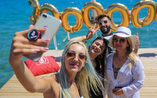 Çektiği kısa videoları TikTok adlı uygulamada paylaşarak 3 milyon takipçi sayısına ulaşan Akdoğan, mutluluğunu takipçileri ve diğer fenomen arkadaşlarıyla kutladı. Antalyalı sosyal medya fenomenleri Deli mi ne? (Abdü), Yakari ve Kadr gibi isimlerin de yerini aldığı plaj partisi, renkli görüntülere sahne oldu.