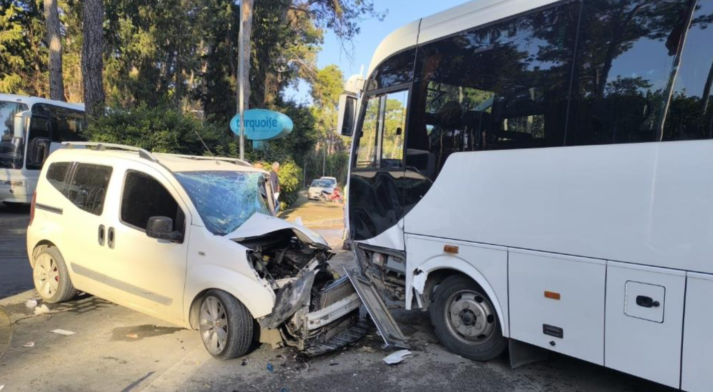 Kaza, Manavgat ilçesi Sorgun Mahallesi oteller bölgesinde meydana geldi. Edinilen bilgiye göre, Side'den Titreyengöl istikametine seyir halindeki İlker V.'nin kullandığı 06 DV 6020 plakalı hafif ticari araç karşı yönden gelip yolun solunda bulunan otele dönen Talip A.'nın kullandığı 07 C 74656 plakalı servis otobüsüyle çarpıştı.