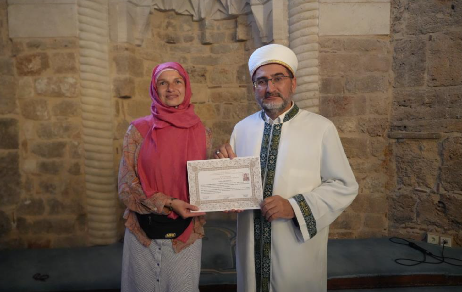 Merasimin sonunda İl Müftü Vekili Talat Özmet, Meryem ismini alan Komanenkova'yı tebrik etti. Özmet, Komanenkova'ya ihtida belgesi ile Diyanet İşleri Başkanlığı yayınlarından Ukraynaca mealli Kur'an-ı Kerim hediye etti.