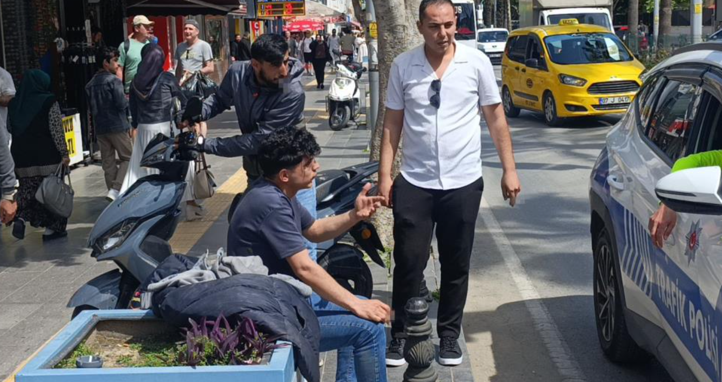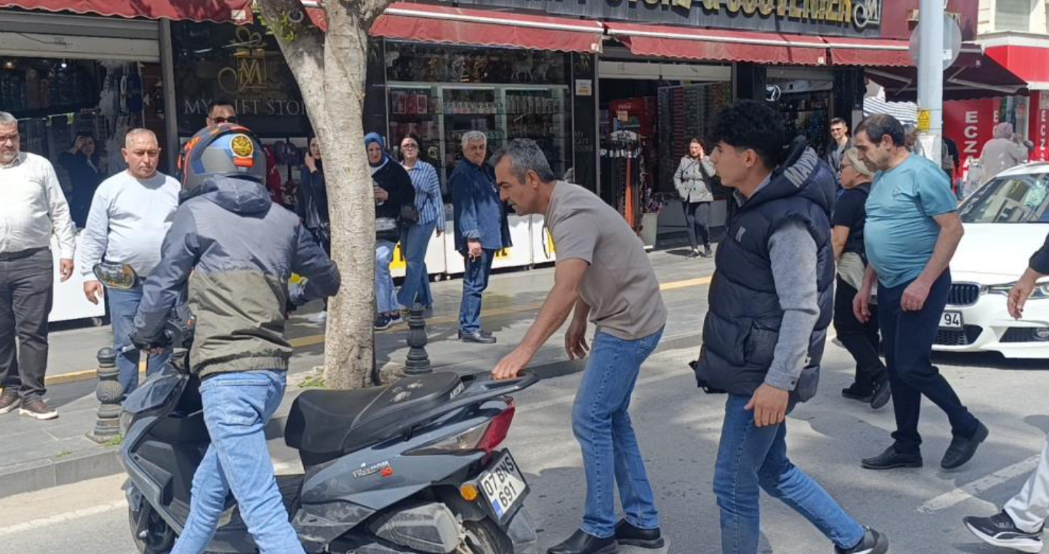 Bir süre düştüğü yerde bekleyen sürücü, vatandaşların yardımıyla ayağa kalktı.