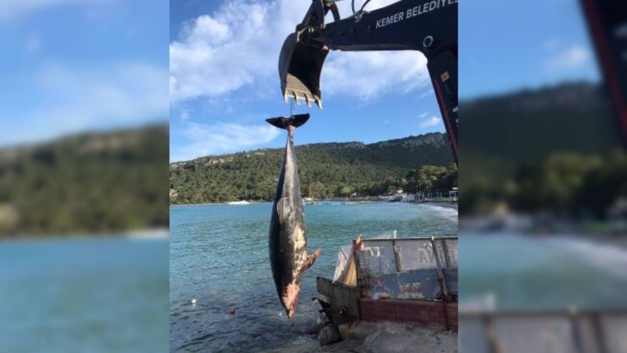 Kemer’in ünlü Ayışığı Koyu sahilinde ölü yunus balığı gören vatandaşlar, durumu Kemer Belediyesine bildirdi. Yunus balığının bulunduğu sahile gelen Kemer Belediyesi Afet İşleri Müdürlüğü ekipleri, yaklaşık 3 metre uzunluğundaki yunus balığında kafa travması ve enfeksiyon olduğunu belirledi. Yapılan fiziki incelemelerin ardından ölü yunus balığı bulunduğu yerden kaldırıldı.