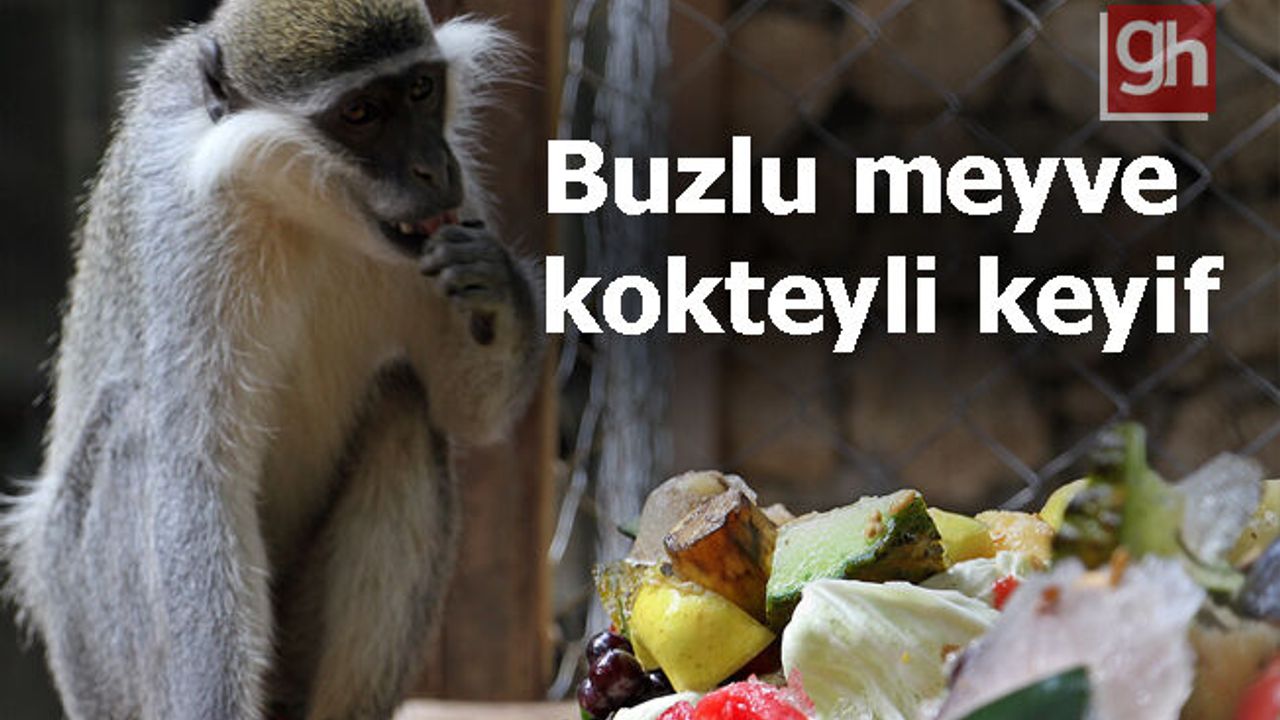 Hava sıcaklığı 36 dereceye kadar çıkan Antalya’da yüzde 90 oranına varan nemden insanların yanı sıra hayvanlar da olumsuz etkileniyor. Kepezaltı bölgesinde 400 dönümlük ormanlık arazi içerisine kurulu Antalya Büyükşehir Belediyesi Hayvanat Bahçesi, 150 türde bin 500’ü geçkin hayvana ev sahipliği yapıyor. Temmuz ayında bastıran sıcak hava ve bunaltıcı nem sonrası hayvanat bahçesi yönetimi de primat grubu ve suyu seven hayvanların hem sıcaklıklardan etkilenmemesi hem de kaybettikleri enerjiyi geri kazanabilmeleri için çeşitli serinleme metotları uyguluyor. Sıcaktan olumsuz etkilenen hayvanların yaşam alanlarını fıskiye sistemiyle sulayan yetkililer, sıcağa dayanıklı ancak yoğun enerjiye ihtiyaç duyan primat grubundan maymunlara da buzlu meyve kokteyli vererek jest yapıyor. Bakıcıları tarafından kendileri için özel hazırlanan ve içerisinde muz, kayısı, kavun, havuç, armut gibi meyvelerden oluşan kokteyli büyük bir iştahla yiyen maymunlar, bir yandan enerji depolarken bir yandan da dondurulmuş meyvelerle serinliyor.