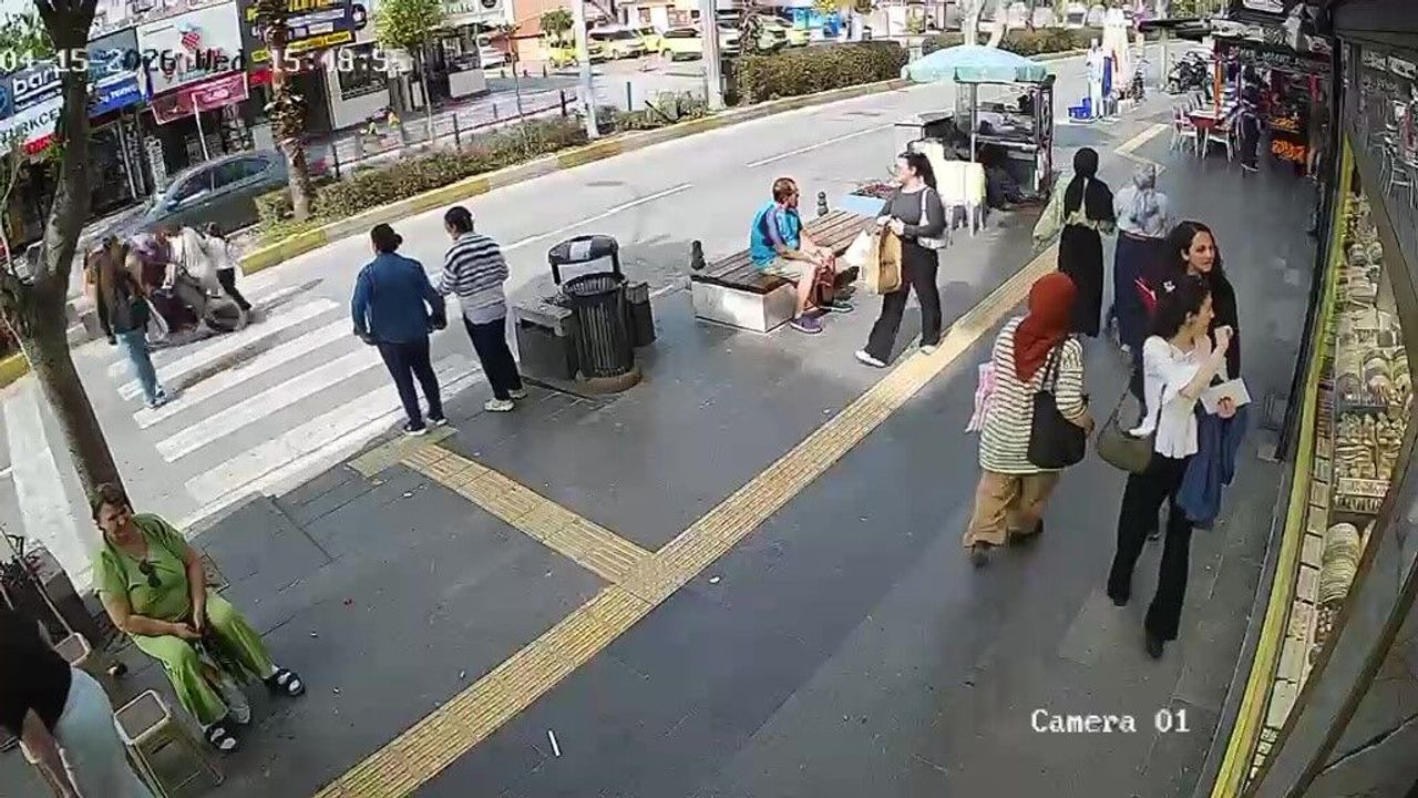 Çarpmanın şiddetiyle yola savrulan anne ve kızının yardımına çevredeki vatandaşlar koşarken, kendisi de yola savrulan motosiklet sürücüsü ayağa kalktıktan sonra çevredekilerin şaşkın bakışları altında motosikletine binerek olay yerinden uzaklaştı.