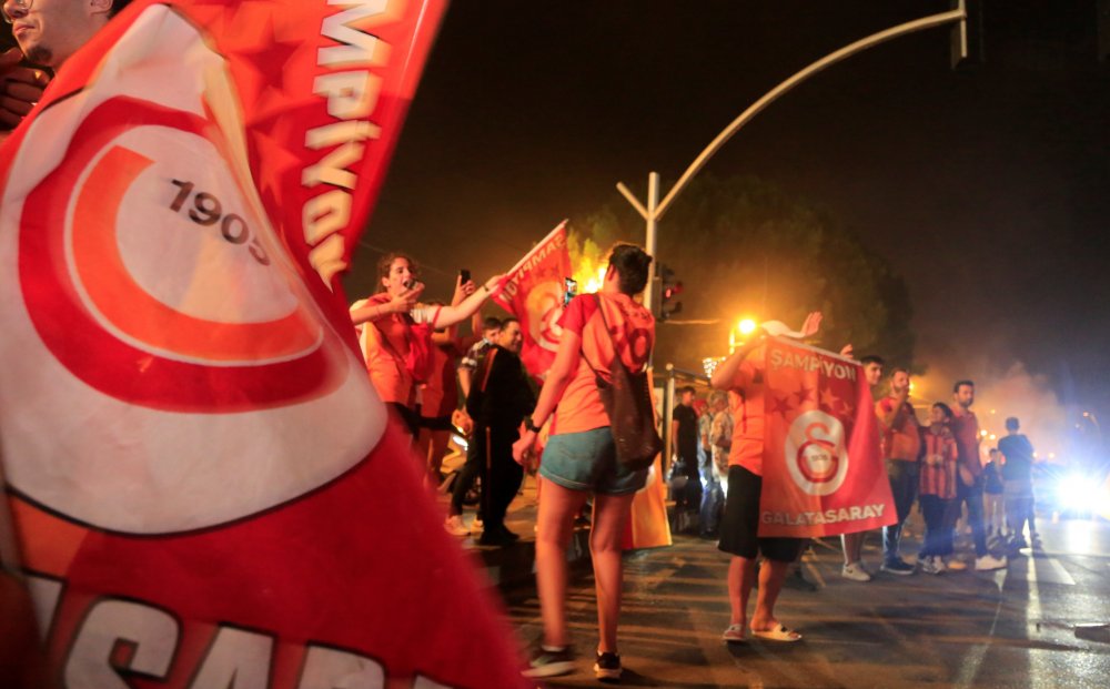 Galatasaray, Konyaspor deplasmanında sahadan galibiyetle ayrılarak şampiyonluğunu ilan ederken Antalya’da binlerce taraftar bitiş düdüğü ile birlikte sokaklara döküldü. Sarı-kırmızılı taraftarların kutlamasına yer yer serpiştiren yağmur da engel olamadı. Fenerbahçeli bazı taraftarlar, formalarıyla kutlamalara katılırken gecenin en anlamlı görüntüsü ise Fenerbahçeli bir taraftarın omzunda çocuğu ve Fenerbahçe formasıyla Galatasaraylı taraftarların sevincine ortak olup ‘hepimiz kardeşiz, hepimiz Türk’üz’ demesi oldu.