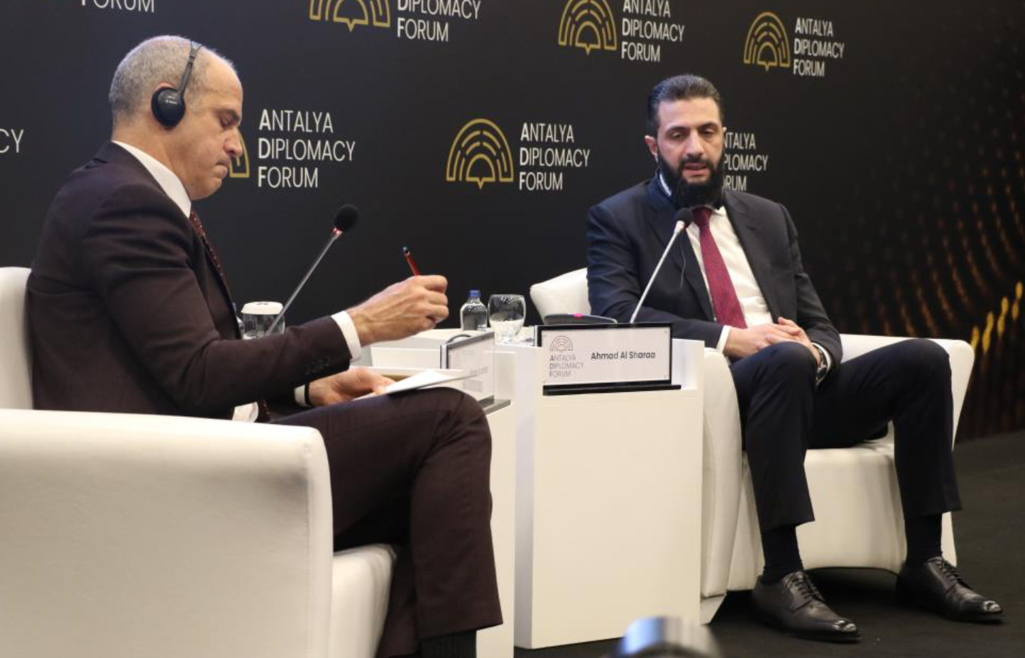 Suriye Cumhurbaşkanı Ahmed Şara, Cumhurbaşkanı Recep Tayyip Erdoğan'ın himayesinde, Türkiye Cumhuriyeti Dışişleri Bakanlığı ev sahipliğinde bu yıl 5'incisi düzenlenen Antalya Diplomasi Forumu'nda açıklamalarda bulundu.