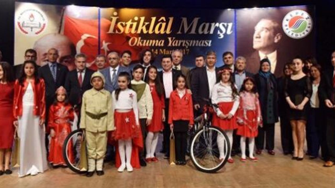 İlkokul ve ortaokul öğrencilerinin 7 kıta, lise öğrencilerinin ise 10 kıta okuduğu İstiklal Marşı seslendirilirken, fona kurtuluş mücadelesini anlatan görseller yansıtıldı. Her öğrenci, seçtiği fon müzik eşliğinde şiiri yorumladı. Türk bayraklı özel kostüm giyen, arkadaşlarının dönemini anlatan koreografisiyle sahneyi süsleyen çocuklar, hem jüriyi, hem de seyirciyi rakiplerinden daha fazla etkilemeyi başardı.